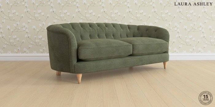 7.0.3 Buy Hathersage by Laura Ashley 3 Seater Sofa Edwin Chenille Hedgerow Green Low Turned - Light Oak from the Next UK online shop Click here to use our accessible website