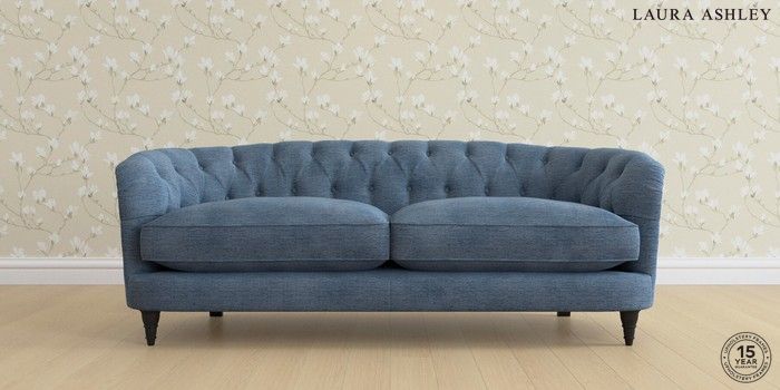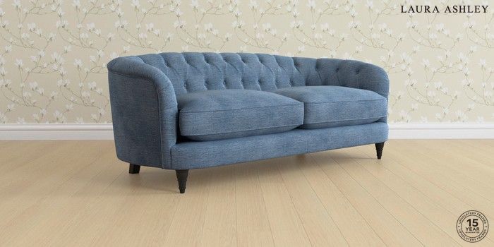 7.0.3 Buy Hathersage by Laura Ashley 3 Seater Sofa Edwin Chenille Seaspray Blue Low Turned - Black from the Next UK online shop Click here to use our accessible website