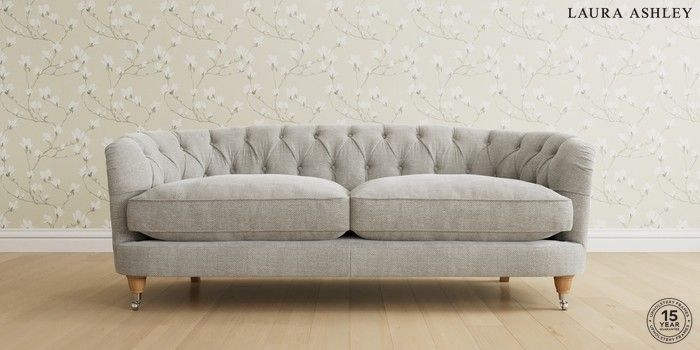 7.0.3 Buy Hathersage by Laura Ashley 3 Seater Sofa Edwin Chenille Silver Grey Low Chrome Castor - Light Oak from the Next UK online shop Click here to use our accessible website