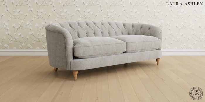 7.0.3 Buy Hathersage by Laura Ashley 3 Seater Sofa Edwin Chenille Silver Grey Low Turned - Light Oak from the Next UK online shop Click here to use our accessible website