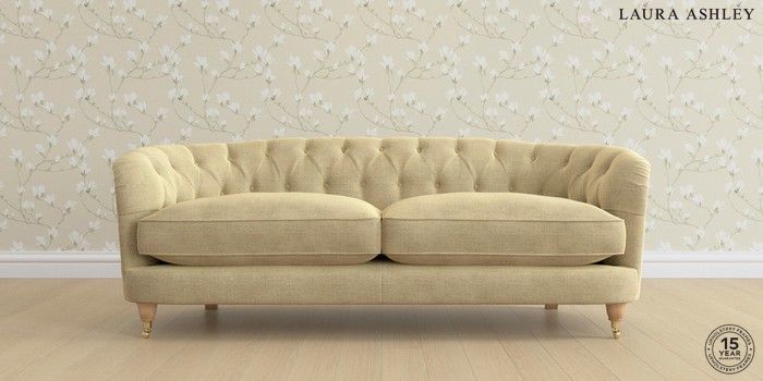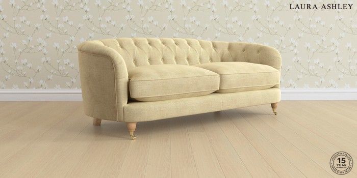 7.0.3 Buy Hathersage by Laura Ashley 3 Seater Sofa Edwin Chenille Truffle Natural Low Brass Castor - Light Oak from the Next UK online shop Click here to use our accessible website