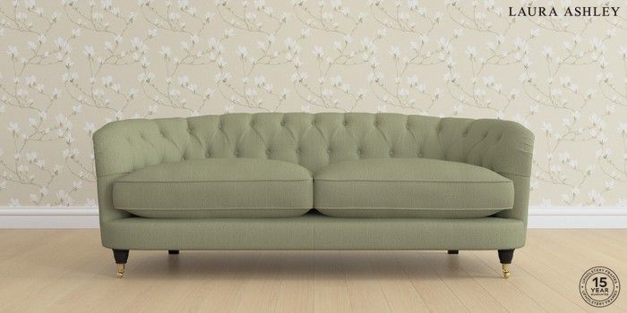 7.0.3 Buy Hathersage by Laura Ashley 3 Seater Sofa Edwin Herringbone Hedgerow Green Low Brass Castor - Black from the Next UK online shop Click here to use our accessible website