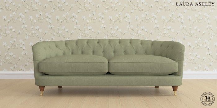 7.0.3 Buy Hathersage by Laura Ashley 3 Seater Sofa Edwin Herringbone Hedgerow Green Low Brass Castor - Teak from the Next UK online shop Click here to use our accessible website