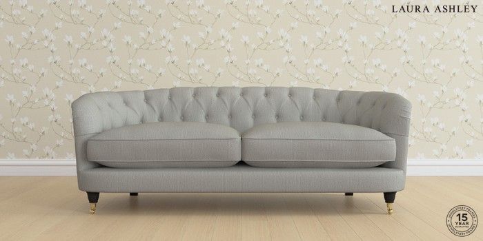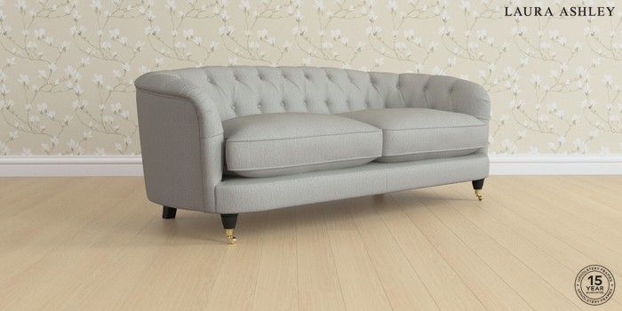 7.0.3 Buy Hathersage by Laura Ashley 3 Seater Sofa Edwin Herringbone Pale Steel Grey Low Brass Castor - Black from the Next UK online shop Click here to use our accessible website