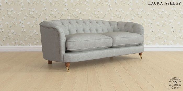 7.0.3 Buy Hathersage by Laura Ashley 3 Seater Sofa Edwin Herringbone Pale Steel Grey Low Brass Castor - Teak from the Next UK online shop Click here to use our accessible website