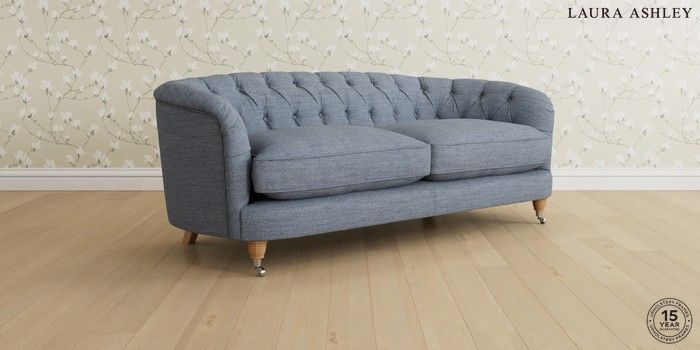 7.0.3 Buy Hathersage by Laura Ashley 3 Seater Sofa Harley Seaspray Blue Low Chrome Castor - Light Oak from the Next UK online shop Click here to use our accessible website