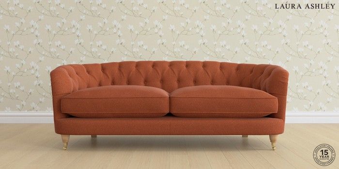 7.0.3 Buy Hathersage by Laura Ashley 3 Seater Sofa Harley Terracotta Orange Low Brass Castor - Light Oak from the Next UK online shop Click here to use our accessible website