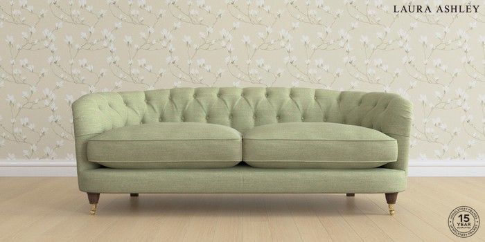 7.0.3 Buy Hathersage by Laura Ashley 3 Seater Sofa Kinsham Hedgerow Green Low Brass Castor - Chestnut from the Next UK online shop Click here to use our accessible website