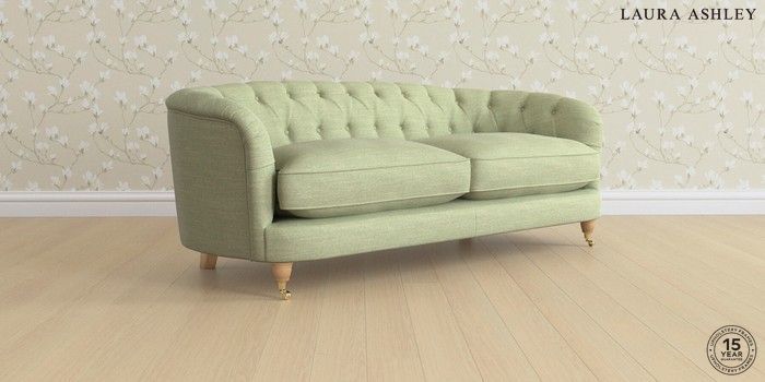 7.0.3 Buy Hathersage by Laura Ashley 3 Seater Sofa Kinsham Hedgerow Green Low Brass Castor - Light Oak from the Next UK online shop Click here to use our accessible website