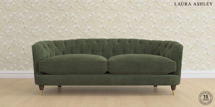 7.0.3 Buy Hathersage by Laura Ashley 3 Seater Sofa Lundar Chenille Ivy Green Low Brass Castor - Chestnut from the Next UK online shop Click here to use our accessible website