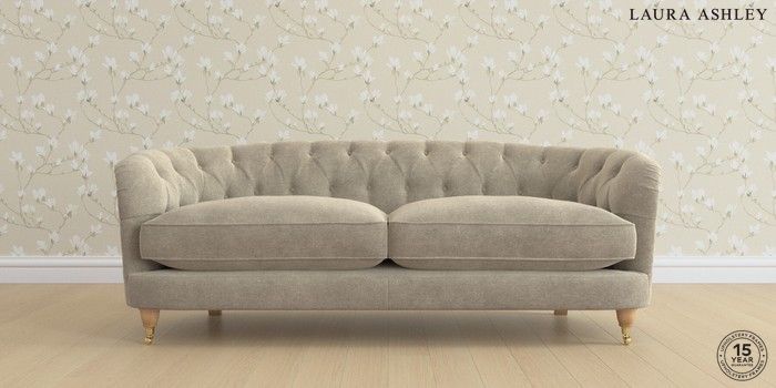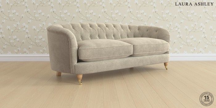 7.0.3 Buy Hathersage by Laura Ashley 3 Seater Sofa Lundar Chenille Truffle Natural Low Brass Castor - Light Oak from the Next UK online shop Click here to use our accessible website