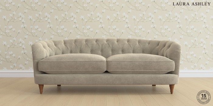 7.0.3 Buy Hathersage by Laura Ashley 3 Seater Sofa Lundar Chenille Truffle Natural Low Turned - Teak from the Next UK online shop Click here to use our accessible website