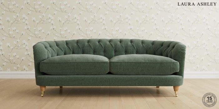 7.0.3 Buy Hathersage by Laura Ashley 3 Seater Sofa Nantmor Fern Green Low Brass Castor - Light Oak from the Next UK online shop Click here to use our accessible website