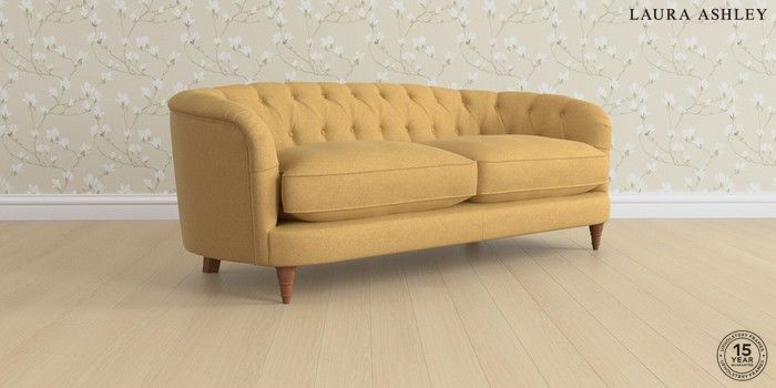7.0.3 Buy Hathersage by Laura Ashley 3 Seater Sofa Peyton Ochre Yellow Low Turned - Teak from the Next UK online shop Click here to use our accessible website