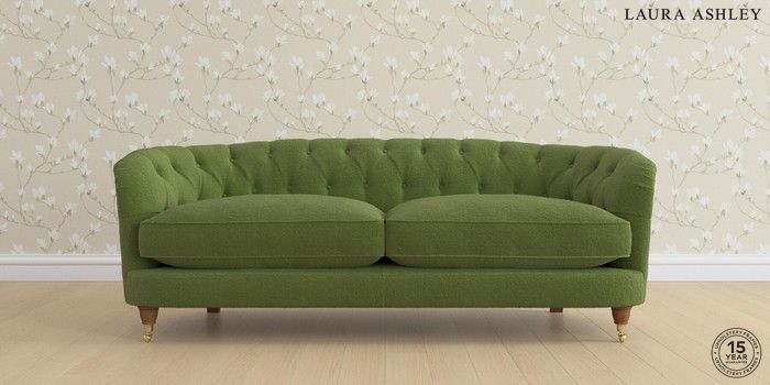 7.0.3 Buy Hathersage by Laura Ashley 3 Seater Sofa Tichwell Olive Green Low Brass Castor - Teak from the Next UK online shop Click here to use our accessible website