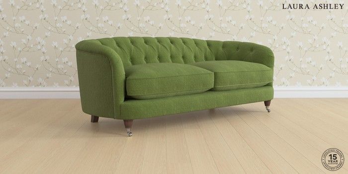7.0.3 Buy Hathersage by Laura Ashley 3 Seater Sofa Tichwell Olive Green Low Chrome Castor - Chestnut from the Next UK online shop Click here to use our accessible website