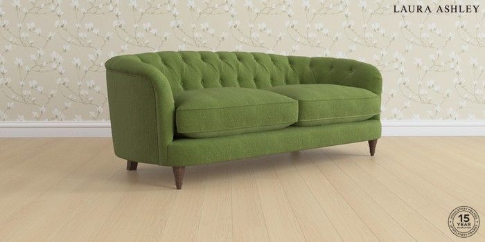 7.0.3 Buy Hathersage by Laura Ashley 3 Seater Sofa Tichwell Olive Green Low Turned - Chestnut from the Next UK online shop Click here to use our accessible website