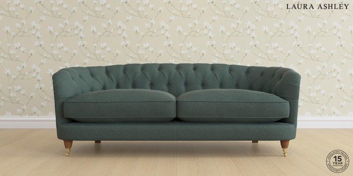 7.0.3 Buy Hathersage by Laura Ashley 3 Seater Sofa Wooton Forest Green Low Brass Castor - Teak from the Next UK online shop Click here to use our accessible website