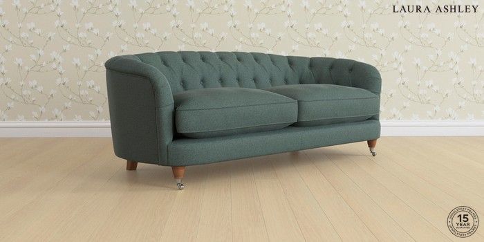 7.0.3 Buy Hathersage by Laura Ashley 3 Seater Sofa Wooton Forest Green Low Chrome Castor - Teak from the Next UK online shop Click here to use our accessible website