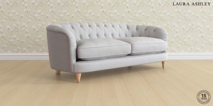 7.0.3 Buy Hathersage by Laura Ashley 3 Seater Sofa Wooton Pale Steel Grey Low Turned - Light Oak from the Next UK online shop Click here to use our accessible website