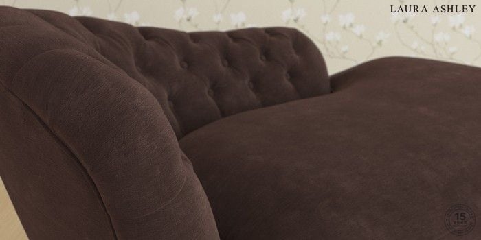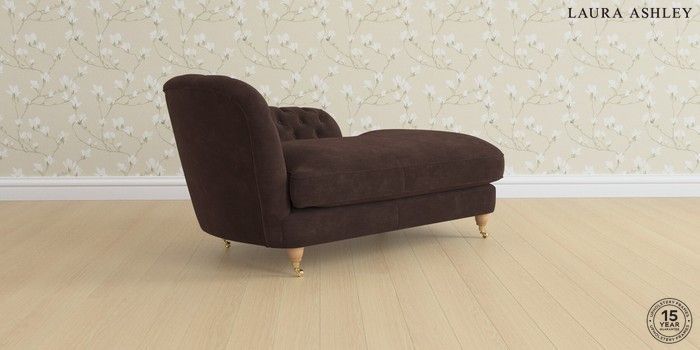 7.2.5 Buy Hathersage by Laura Ashley Chaise Longue Left Hand Alwyn Velvet Chocolate Brown Low Brass Castor - Light Oak from the Next UK online shop Click here to use our accessible website