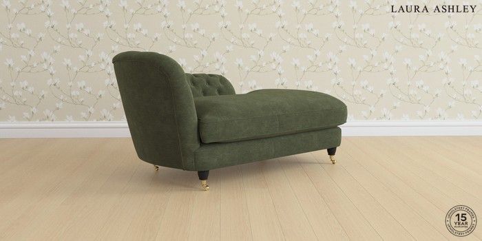 7.0.3 Buy Hathersage by Laura Ashley Chaise Longue Left Hand Alwyn Velvet Ivy Green Low Brass Castor - Black from the Next UK online shop Click here to use our accessible website