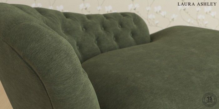 7.0.3 Buy Hathersage by Laura Ashley Chaise Longue Left Hand Alwyn Velvet Ivy Green Low Turned - Chestnut from the Next UK online shop Click here to use our accessible website