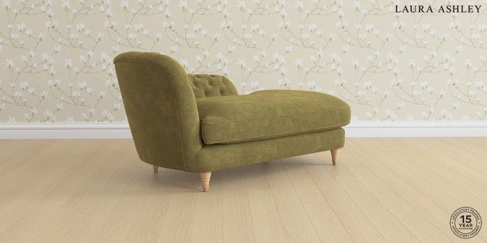 7.0.3 Buy Hathersage by Laura Ashley Chaise Longue Left Hand Alwyn Velvet Olive Green Low Turned - Light Oak from the Next UK online shop Click here to use our accessible website