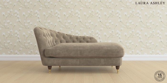 7.0.3 Buy Hathersage by Laura Ashley Chaise Longue Left Hand Alwyn Velvet Truffle Natural Low Brass Castor - Chestnut from the Next UK online shop Click here to use our accessible website