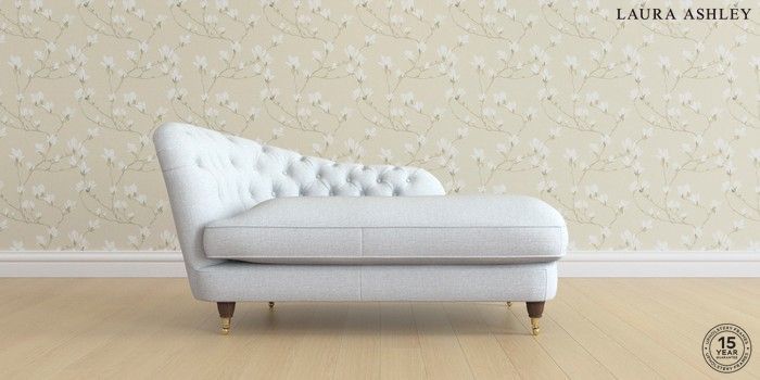 7.0.3 Buy Hathersage by Laura Ashley Chaise Longue Left Hand Anneliese Seaspray Blue Low Brass Castor - Chestnut from the Next UK online shop Click here to use our accessible website
