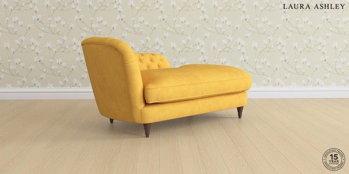 7.0.3 Buy Hathersage by Laura Ashley Chaise Longue Left Hand Bainton Ochre Yellow Low Turned - Chestnut from the Next UK online shop Click here to use our accessible website