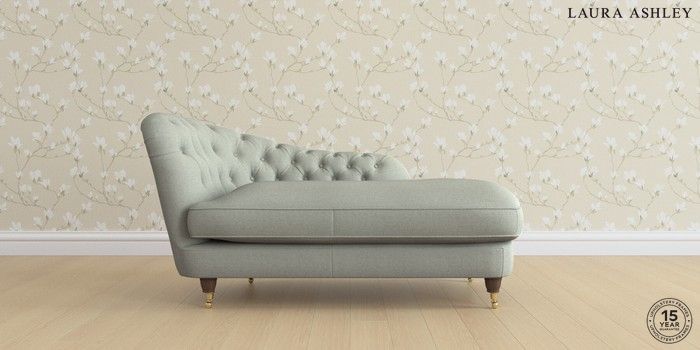 7.0.3 Buy Hathersage by Laura Ashley Chaise Longue Left Hand Bainton Sage Green Low Brass Castor - Chestnut from the Next UK online shop Click here to use our accessible website