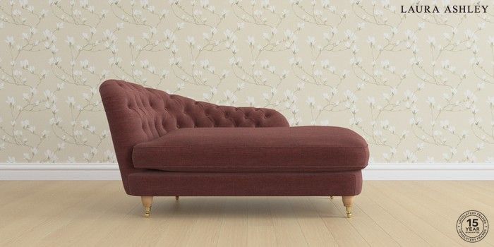 7.0.3 Buy Hathersage by Laura Ashley Chaise Longue Left Hand Edwin Chenille Burgundy Red Low Brass Castor - Light Oak from the Next UK online shop Click here to use our accessible website
