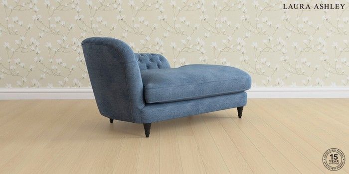 7.0.3 Buy Hathersage by Laura Ashley Chaise Longue Left Hand Edwin Chenille Seaspray Blue Low Turned - Black from the Next UK online shop Click here to use our accessible website