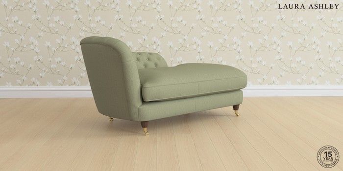 7.0.3 Buy Hathersage by Laura Ashley Chaise Longue Left Hand Edwin Herringbone Hedgerow Green Low Brass Castor - Chestnut from the Next UK online shop Click here to use our accessible website
