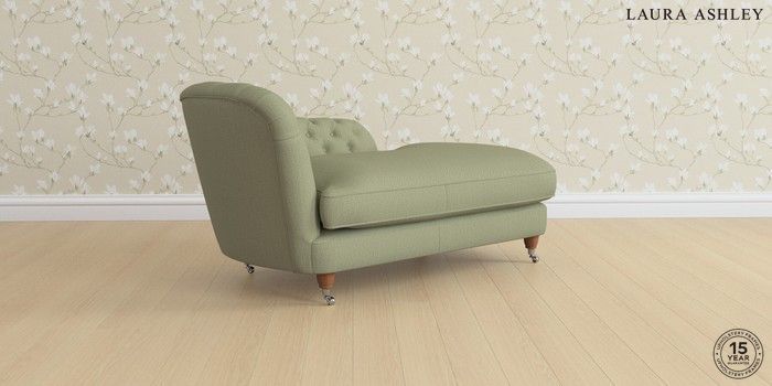 7.0.3 Buy Hathersage by Laura Ashley Chaise Longue Left Hand Edwin Herringbone Hedgerow Green Low Chrome Castor - Teak from the Next UK online shop Click here to use our accessible website
