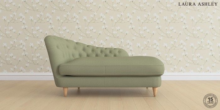 7.0.3 Buy Hathersage by Laura Ashley Chaise Longue Left Hand Edwin Herringbone Hedgerow Green Low Turned - Light Oak from the Next UK online shop Click here to use our accessible website
