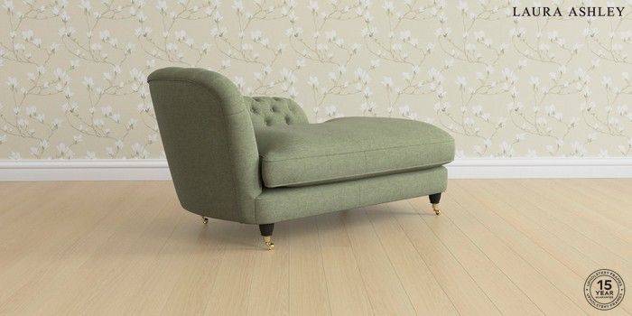 7.0.3 Buy Hathersage by Laura Ashley Chaise Longue Left Hand Harley Moss Green Low Brass Castor - Black from the Next UK online shop Click here to use our accessible website