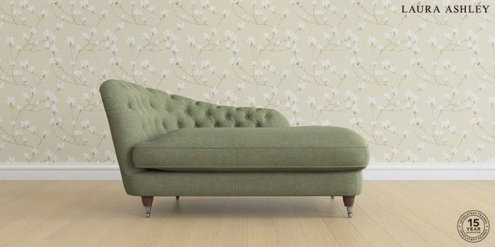 7.0.3 Buy Hathersage by Laura Ashley Chaise Longue Left Hand Harley Moss Green Low Chrome Castor - Chestnut from the Next UK online shop Click here to use our accessible website