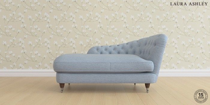 7.0.3 Buy Hathersage by Laura Ashley Chaise Longue Left Hand Harley Seaspray Blue Low Turned - Chestnut from the Next UK online shop Click here to use our accessible website
