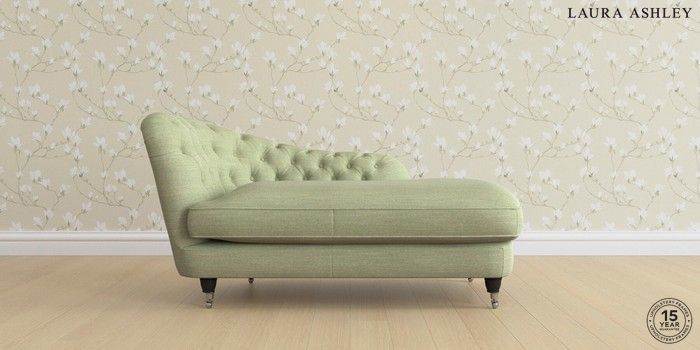 7.0.3 Buy Hathersage by Laura Ashley Chaise Longue Left Hand Kinsham Hedgerow Green Low Chrome Castor - Black from the Next UK online shop Click here to use our accessible website