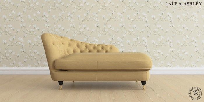 7.0.3 Buy Hathersage by Laura Ashley Chaise Longue Left Hand Kinsham Ochre Yellow Low Brass Castor - Black from the Next UK online shop Click here to use our accessible website