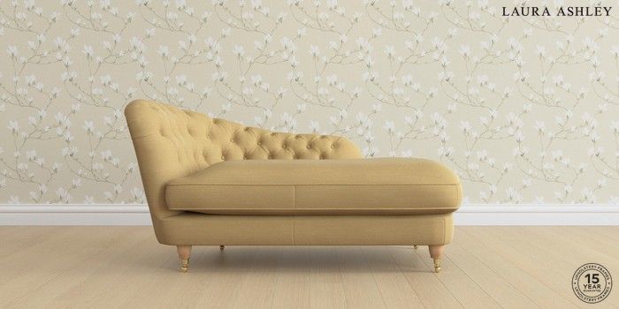 7.0.3 Buy Hathersage by Laura Ashley Chaise Longue Left Hand Kinsham Ochre Yellow Low Brass Castor - Light Oak from the Next UK online shop Click here to use our accessible website
