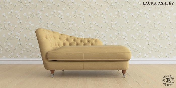 7.0.3 Buy Hathersage by Laura Ashley Chaise Longue Left Hand Kinsham Ochre Yellow Low Chrome Castor - Teak from the Next UK online shop Click here to use our accessible website