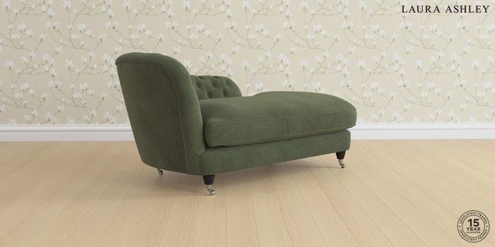 7.0.3 Buy Hathersage by Laura Ashley Chaise Longue Left Hand Lundar Chenille Ivy Green Low Chrome Castor - Black from the Next UK online shop Click here to use our accessible website