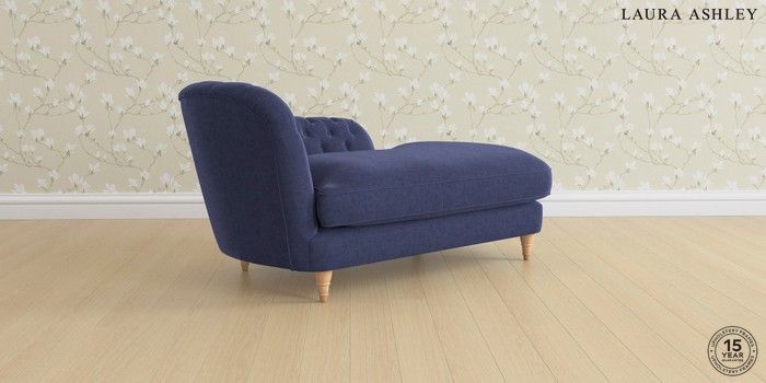 7.0.3 Buy Hathersage by Laura Ashley Chaise Longue Left Hand Nantmor Midnight Navy Low Chrome Castor - Teak from the Next UK online shop Click here to use our accessible website
