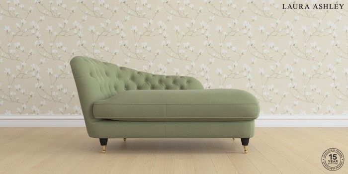 7.0.3 Buy Hathersage by Laura Ashley Chaise Longue Left Hand Peyton Hedgerow Green Low Brass Castor - Black from the Next UK online shop Click here to use our accessible website