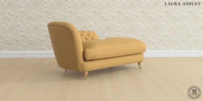 7.0.3 Buy Hathersage by Laura Ashley Chaise Longue Left Hand Peyton Ochre Yellow Low Brass Castor - Light Oak from the Next UK online shop Click here to use our accessible website