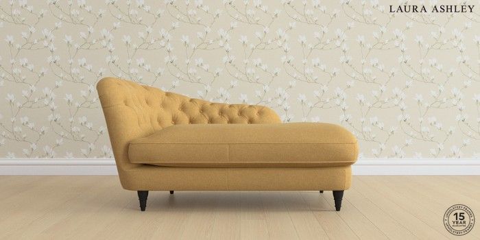 7.0.3 Buy Hathersage by Laura Ashley Chaise Longue Left Hand Peyton Ochre Yellow Low Turned - Black from the Next UK online shop Click here to use our accessible website