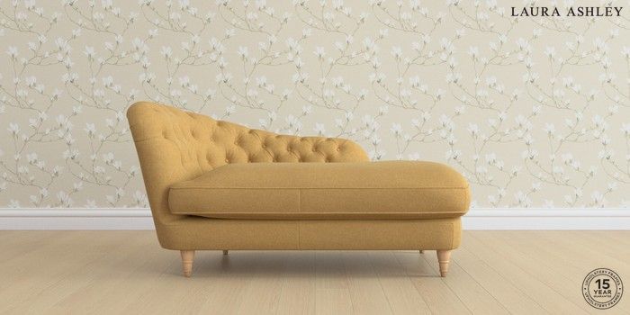 7.0.3 Buy Hathersage by Laura Ashley Chaise Longue Left Hand Peyton Ochre Yellow Low Turned - Light Oak from the Next UK online shop Click here to use our accessible website